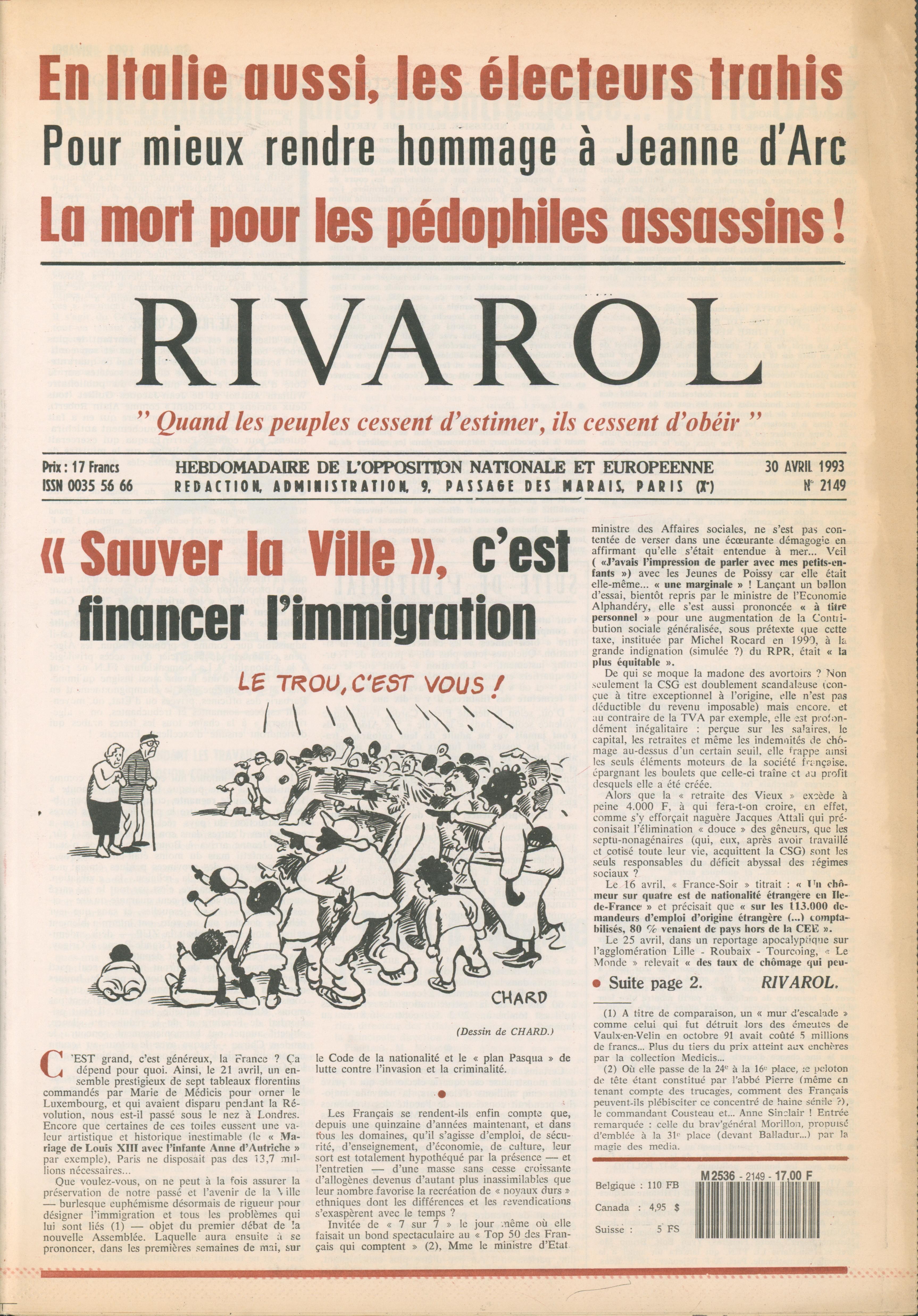 RIVAROL N°2149 du 30 avril 1993 (pdf)