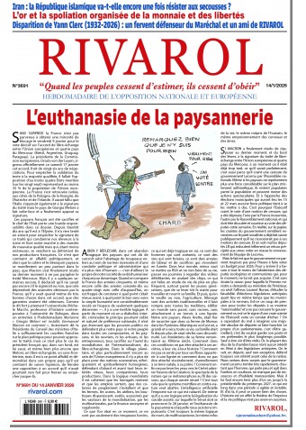 A BIEN Y RÉFLÉCHIR, dans cet abandon tragique des paysans qui ont dû de surcroît subir l’abattage de troupeaux entiers au nom de normes insensées et d’une conduite politique et administrative qui n’a plus rien d’humain — c’est d’ailleurs le propre de notre société de se déshumaniser chaque jour davantage. Quand on compare la France des années cinquante, et même encore celle des années soixante-dix ou quatre-vingt avec celle d’aujourd’hui, on est frappé de constater à quel point c’était mieux avant, à quel point le bon sens voire la simple humanité ont considérablement reculé en l’espace de seulement quelques décennies —, il y a une terrible logique. A partir du moment où on a diabolisé, interdit, criminalisé le principe pourtant noble et naturel de préférence nationale, il n’est pas étonnant que les pouvoirs publics ne défendent plus notre pays ni notre peuple dans toutes ses composantes, ni les paysans, ni les ouvriers, ni les artisans, ni les entrepreneurs, tous sacrifiés sur l’autel du mondialisme, de l’internationalisme, du libre-échangisme. Dans le village planétaire, et plus particulièrement encore au sein de l’Union européenne, il n’y a plus de place pour des nations souveraines, ethniquement et spirituellement homogènes, défendant d’abord et avant tout leurs intérêts vitaux, leurs compatriotes, leurs productions. Dans la logique mondialiste il est cohérent que les immigrés rentrent et que les emplois sortent, que des colonies de peuplement s’installent et que les fermes, les usines, les ateliers, les boutiques disparaissent, avalés, assassinés par les vautours de la mondialisation, par les multinationales, par la finance anonyme et vagabonde.